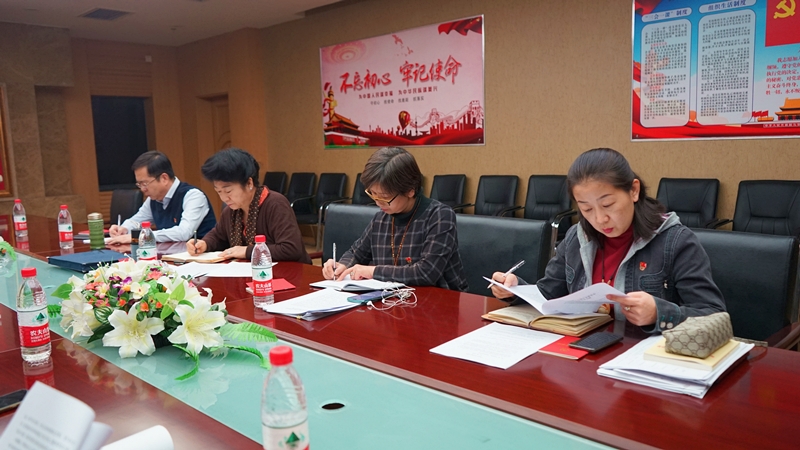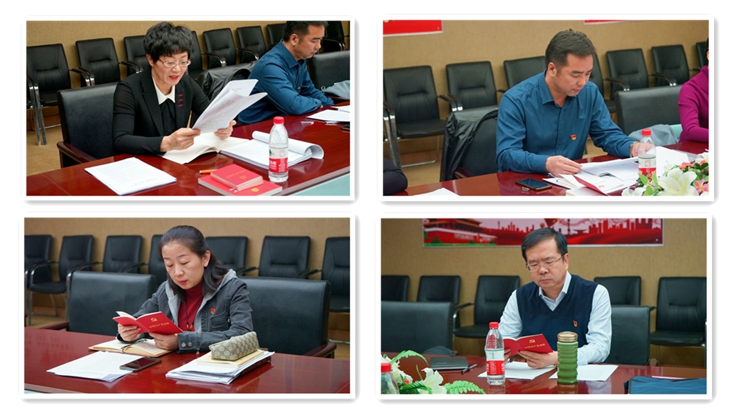 会议分别对十九届四中全会公报全文、《中国共产党章程》《中国共产党纪律处分条例》《“不忘初心、牢记使命”优秀共产党员先进事迹选编》(张富清篇)进行了深入学习。随后由党委委员丁国强、彭燕对照自我检视六方面的内容进行了自我检视的发言。