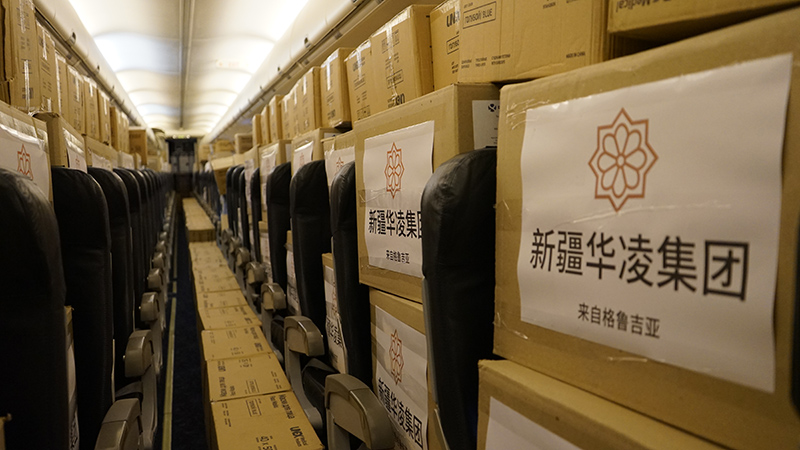 在乌兹别克斯坦的大力支持下,mg4355电子游戏线路检测集团第一批运送防疫物资的专机于2月7日凌晨抵达乌鲁木齐国际机场。