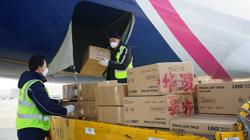 防控物资到达乌鲁木齐国达机场