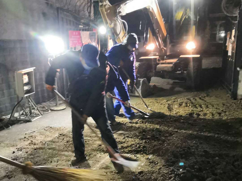 由于地下管线多,必须由人员下坑清土。党员干部、维修人员轮番下坑作业,汗水打湿的头发在严寒中又冻成了冰珠。午饭、晚饭所有人员均在现场轮流就餐,“人轮换、工不停”。最终历时17个小时,于2月24日凌晨3点,完成了抢修任务,并对事故现场进行了回填、清理,用实际行动注入了mg4355电子游戏线路检测的“温度”,在这场“大考”中展现出了民企的责任与担当。