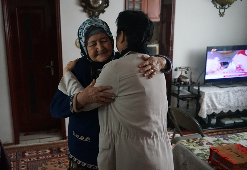 ▲看望乌兹别克族米哈来依˙玉苏普江老人