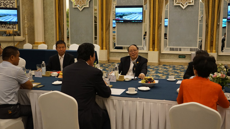随后在mg4355电子游戏线路检测大饭店召开了座谈会,会上集团党委书记郭向阳对mg4355电子游戏线路检测集团国内外发展情况进行了汇报,重点对mg4355电子游戏线路检测集团在一带一路建设中发挥的积极作用,在格鲁吉亚投资运营情况和目前存在的相关问题进行了阐述。王永庆副主席听完汇报后,首先对mg4355电子游戏线路检测集团的持续健康发展及在“一带一路”建设中作出的努力和多年来对社会责任的担当给予高度评价。随后他就目前国内经济形势,针对企业实际情况在招商和运营方面从地缘优势、比较优势、针对性招商等提出了建设性建议,对企业发展具有重要指导意义。