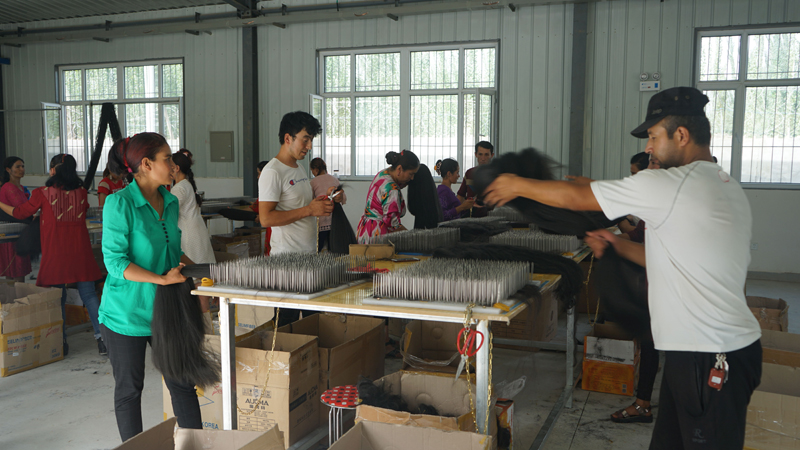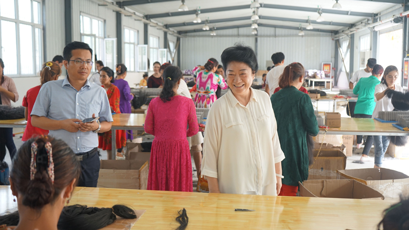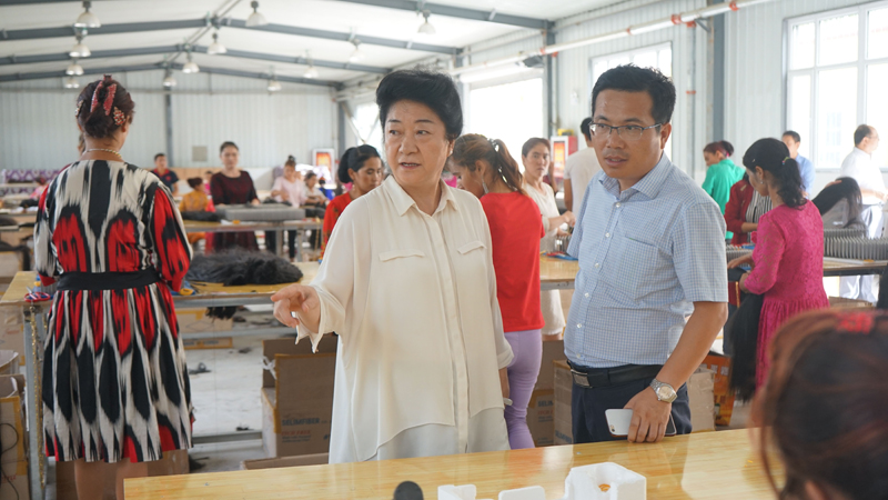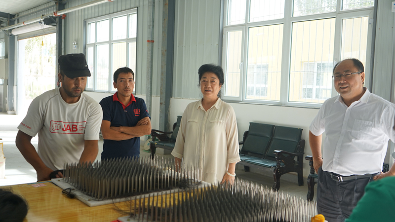 18日中午,李书记一行到达和田机场,一下飞机就在和田行署副秘书长文战和的陪同下,驱车前往200多公里外的于田县希吾勒乡妇女技能培训就业园,查看今年6月mg4355电子游戏线路检测集团响应全国工商联、自治区党委脱贫攻坚的号召,为解决剩余劳动力就业,尽快实现脱贫,向和田浩林发饰品有限公司提供100万流动资金用于周转情况,由于资金的及时到位,工厂重新恢复生产。