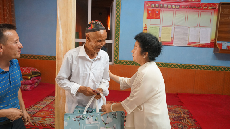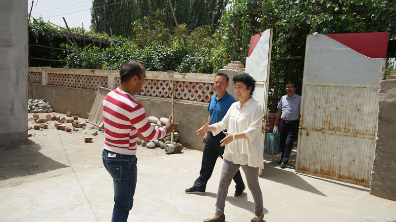 另一个亲戚麦麦提.麦提库尔班得知李书记来看他们,非常高兴,放下手中的活赶紧出来迎接李书记,拉着李书记的手来到家里感慨地说:“非常感谢米董事长,感谢李书记一直关心帮助他们,这几年他们家里在各级党委政府的关怀帮助下,生活越来越好了,今年正在翻修房子和院子,特别感谢党真心为我们老百姓解决难题办实事”。李书记鼓励他说:“要坚信党和政府,更要依靠自己的双手改变贫穷面貌,彻底摘掉穷帽子”。随后将带来的慰问品及1000元慰问金送到他们手中,祝愿他们古尔邦节快乐,身体健康。